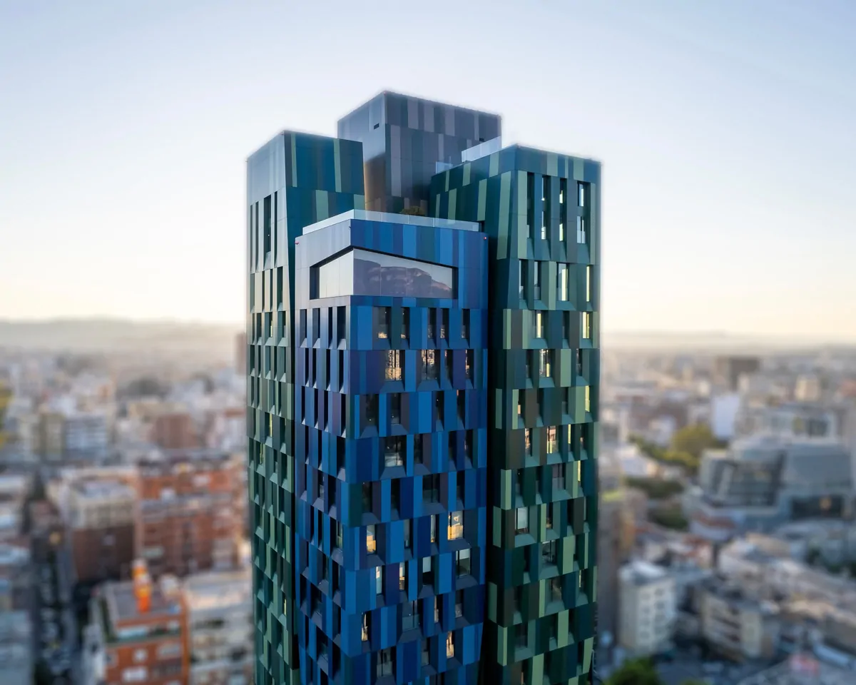 Entworfen vom italienischen Architekturbüro Archea Associati bietet das 26-stöckige Hochhaus mit Helikopterlandeplatz an bester Lage in Tirana Büroflächen für höchste Ansprüche, ein Restaurant, Gym- und Spa-Bereich sowie Infinity Pool.